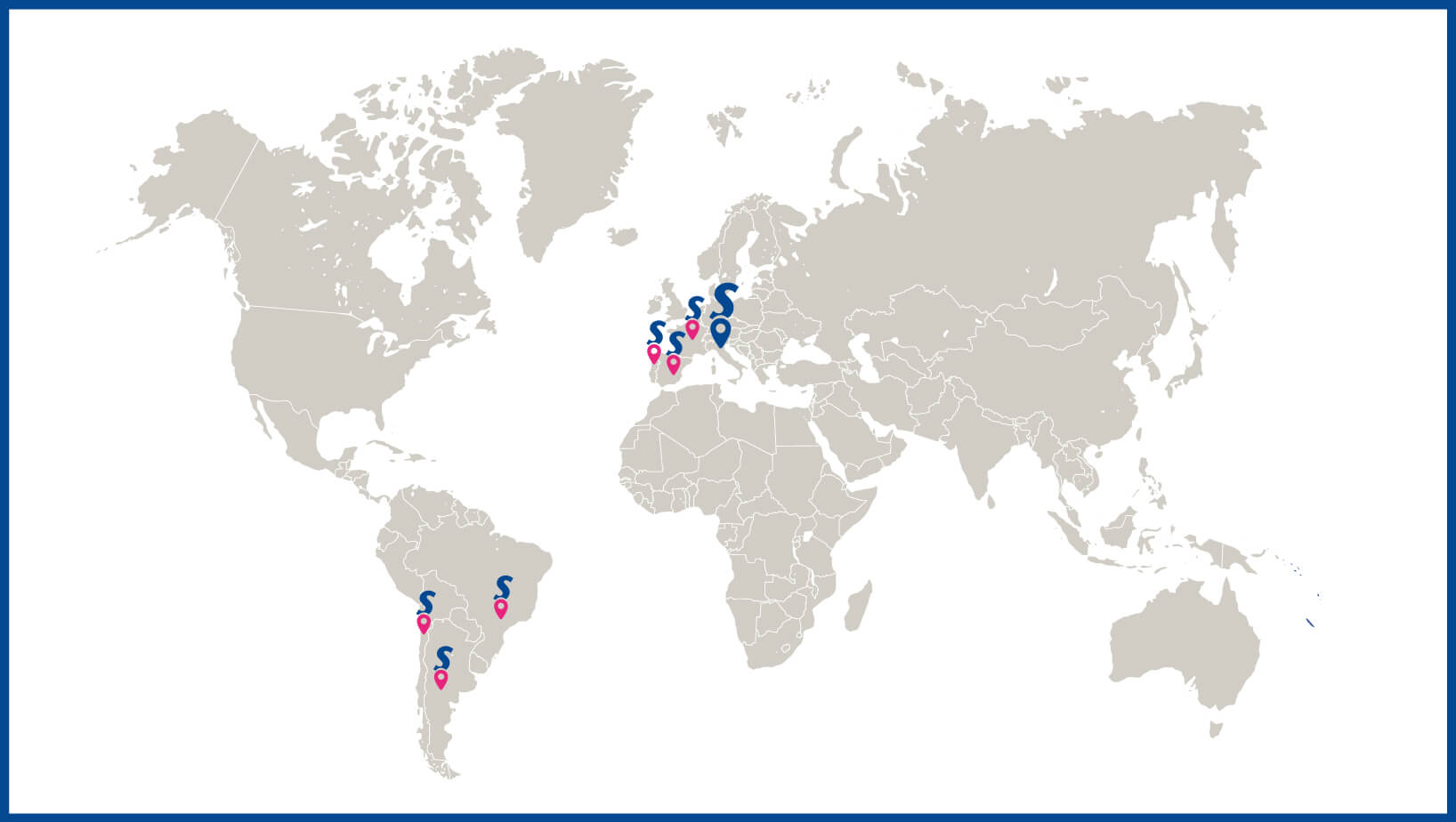 Inizia lo sviluppo internazionale con la costituzione delle filiali in Spagna (1988), Francia (1991), Portogallo (1995), Argentina (1997), Cile (2004), Brasile (1988).